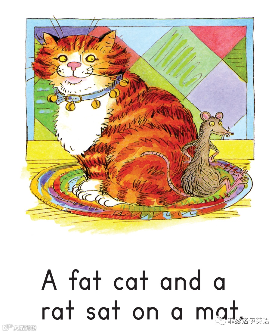 我们的第一本书是《一只肥猫》,这本书的创作让我们无比兴奋,因为我们仅仅采用了26个字母当中的13个来编写它,而且我们使用的都是字母的基础发音。基础发音,我们指的是apple里的a!, ball里的b!, cat里的c!,诸如此类,把这些基础发音放在一起就构成了单词。好吧,我给你们举个列子,这是书名《一只肥猫》,A!, f! a! t! - Fat, c! a! t! - Cat -- 《A Fat Cat 》。通过把字母发音放在一起,我们创作了这个精彩的小故事。正如我说的那样,每个字母只使用了它的一个发音--基础发音。随着我们持续地学习,你也许会记得,有时候我们会使用两个字母去发一个音,正如句子“ I feel too hot”里的“too”这个单词,这里的“oo”有2个“o”,两个字母o在一起并不是发出2次o的基础音,而是形成一个新的发音oo!。同样的情况,单词“with”里的“th”发出的是新的组合音th!,当这两个字母被放在一起的时候,它们不再是t和 h的基础发音。