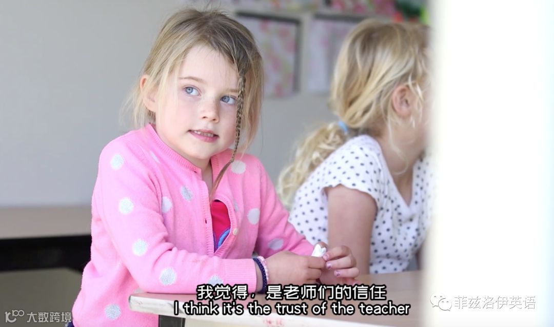 Lucy Parent at FCS (学生家长): I feel like it’s home schooling, (我感觉这就是一个家庭学校,)but I don’t have to do it at home so I am dropping the kids off at someone else’s home, a friend’s home. (但我不用在自己家里做这件事,所以就像是我把孩子安放到了某个人的家里,一个好朋友的家里学习,)But I know that the children are being educated very well but also looked after and loved and cared for. (但我知道孩子们是在接受良好的教育,同时也被关爱,并被照顾得很好。)