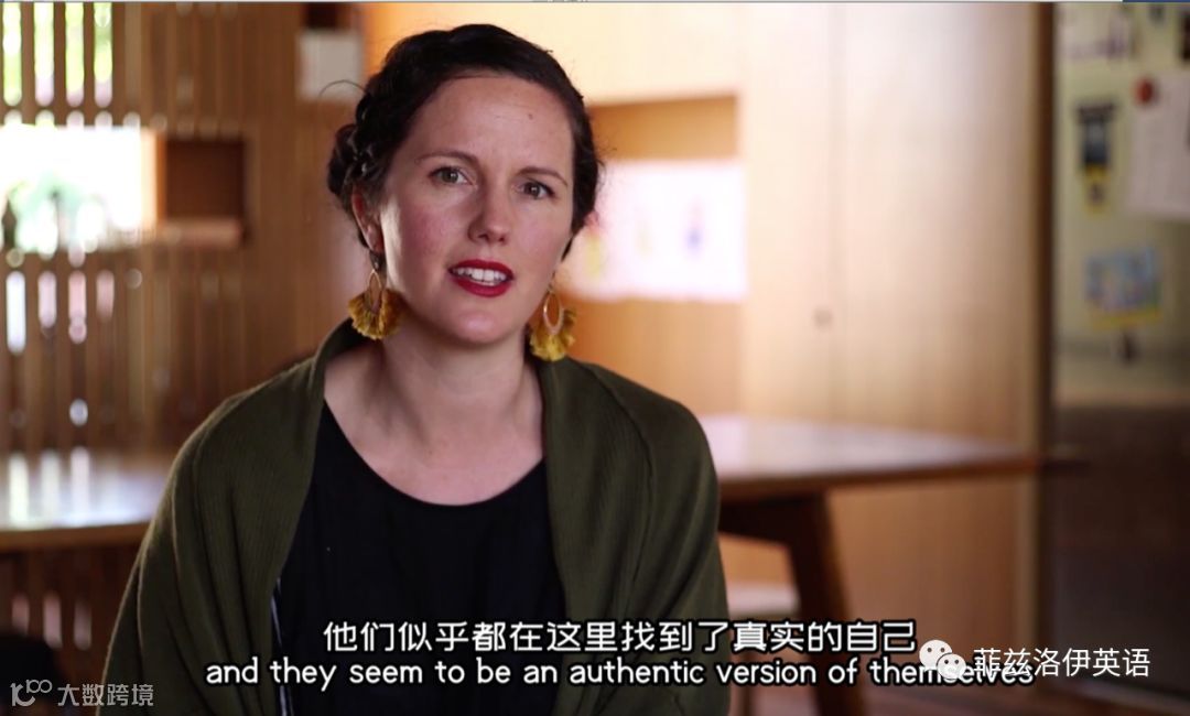 Parent at FCS Megan(学生家长):Why I think that children of Fitzroy community school experience happiness is because they feel such a strong sense of belonging.(我为什么觉得孩子们在菲兹洛伊社区学校是幸福的,原因是他们都有很强烈的归属感。) So the community is there, it really is the extended family model, (社区学校就在那里,它真的是一个扩展的大家庭模式。)where everyone knows everyone. (每个人都认识彼此,)And everybody is seen and everybody is heard, and they seem to be an authentic version of themselves.(没有人会被忽略,每个人的心声和话语都能被听到,他们似乎都在这里找到了真实的自己。)