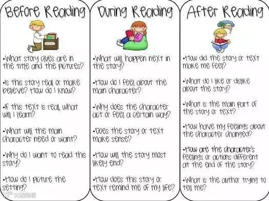 在读一本书之前,很多老师会采取的做法是,分成三个阶段:读前,读中,读后。在每个阶段,根据实际具体情况,找到可以问问题的点。
