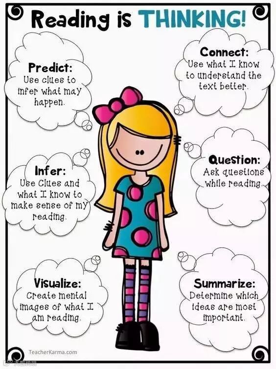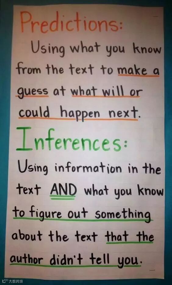 预测:是根据书里已经给出的信息,去猜想接下来会发生什么。 比如,我们读到这样一段:“一个女孩,看到院子里有一堆木头,内心很激动,迫不及待想要用这些木头做出点什么来。” 通过这段描述,我们可以【推测-Predict】出:恩,接下来,这个女孩就应该开始动手,去加工这些木头了。