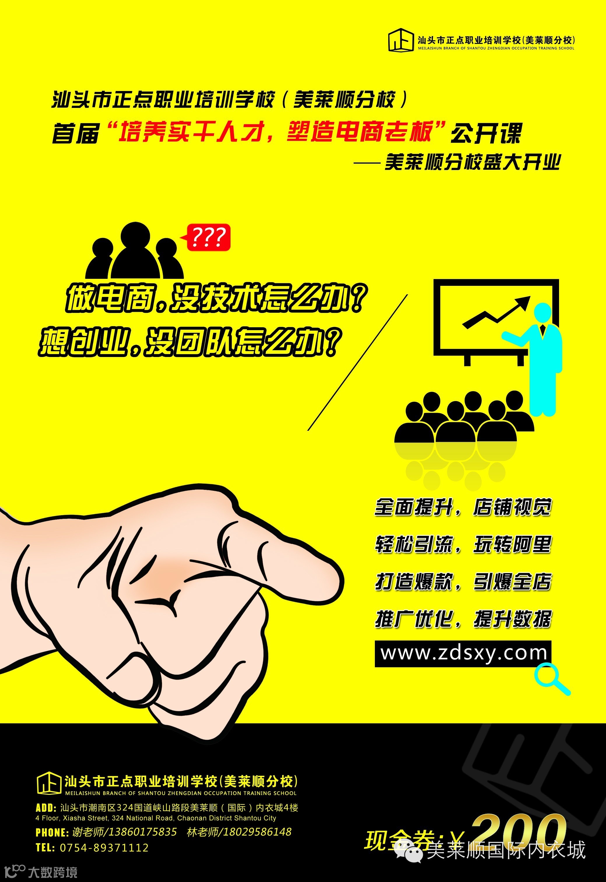 本校开设专业有:淘宝美工、淘宝推广、淘宝运营、淘宝创业、淘宝产品摄影、阿里巴巴运营班、微信营销(即:微商)等课程。欢迎前来参观、咨询、报名!
