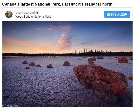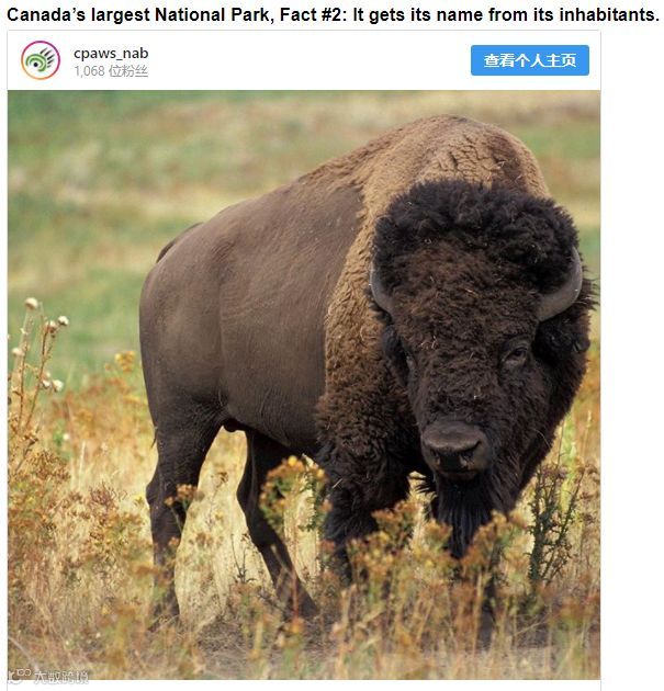 这庞大的国家公园叫木水牛(Wood Buffalo),它横跨亚伯塔省和西北特区的边界,它占据了亚省北部和西北特区南部的大片地域,里面有森林、草原和湿地,是无数动、植物的家。