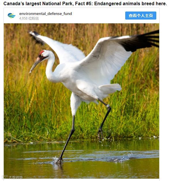 这公园是无数动物的家园,包括狼、熊和猞猁,也是一些濒临灭绝动物的栖息地,比如百日鹤(whooping crane)。