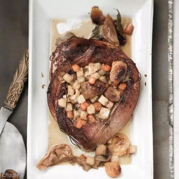 这道烤猪绝对是周末大餐的点睛之笔:配上果干和各种调料的猪肉通常也需要更久的时间才能熟烂入味。