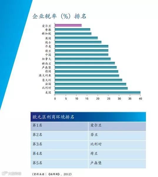 爱尔兰拥有专为投资者利益最大化而设计的极具吸引力的税收系统。12.5%的企业所得税税率几乎是世 界最低的,特别是与其他欧洲国家相比时,例如英国 (23%)和德国(约30%)。爱尔兰还具有良好的控股公司制度,是企业选择其总部的理想国家。25%研发 费用可用于税收抵免。这里还拥有广泛的和不断增长的双重征税条约国家网络。