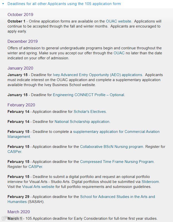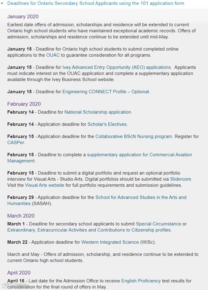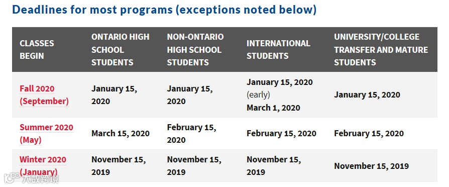安省本地及国际学生的申请截至时间是2020年1月15日。
