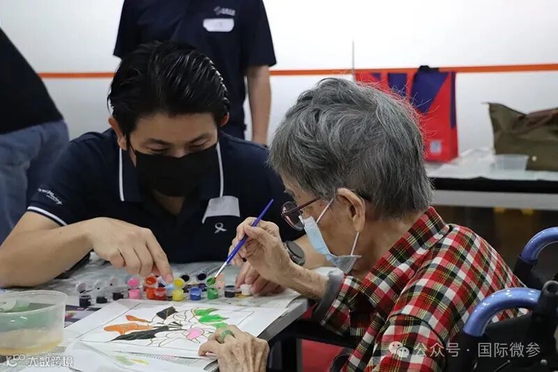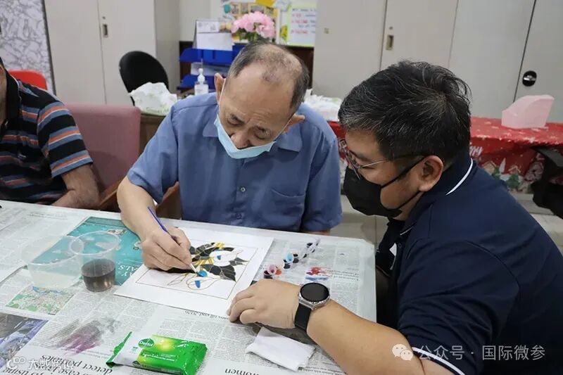 当天下午,养老院活动室内节日氛围浓厚。慰问团不仅为老人们准备了贴心的节日礼包,还特别策划了富有东南亚文化特色的互动环节——巴迪克(Batik)印染填色创作。在慰问团成员的陪伴与协助下,老人们亲手绘制出独具特色的图案,在轻松愉快的动手体验中感受慰问团带去的关怀与欢乐。创作活动结束后,慰问团向每一位老人送上了包含健康食品及节日贺卡的礼包。