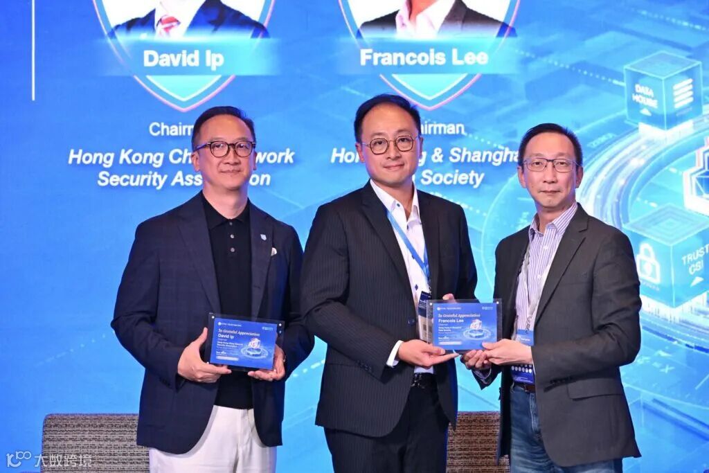 (左至右)中港网络安全协会创会主席 David Ip、CPC 数字战略官(信息与网络安全)Edman Tam 及沪港合作数字生态交流协会创会会长 Francois Lee