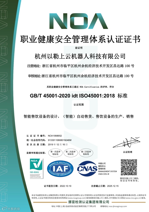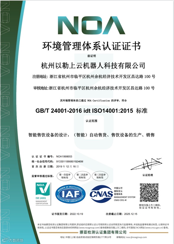 杭州以勒上云机器人科技有限公司成立于 2007年11月。以勒公司是一家集研发、生产、销售、服务为一体的国家高新技术企业。主营产品涵盖:智能售货机、智能售饮机、服务型 AI 机器人等商用设备,同时提供配套设备操控系统、后台管理系统软件开发与相关售后服务。可根据客户需求提供各类智能机的OEM和ODM 定制服务。公司位于杭州市临平区国家高新经济技术开发区昌达路100号。厂区占地面积30亩,建筑面积52000㎡,投资总额1.39亿人民币。厂区内建有:智能咖啡机流水线生产车间、智能新零售机器人实验样机生产车间、智能新零售机器人主产品流水线生产车间、钣金车间、测试中心、技术研发中心(含智能实验室)和多功能智能体验展厅、综合仓库、11 层现代科技办公楼等。