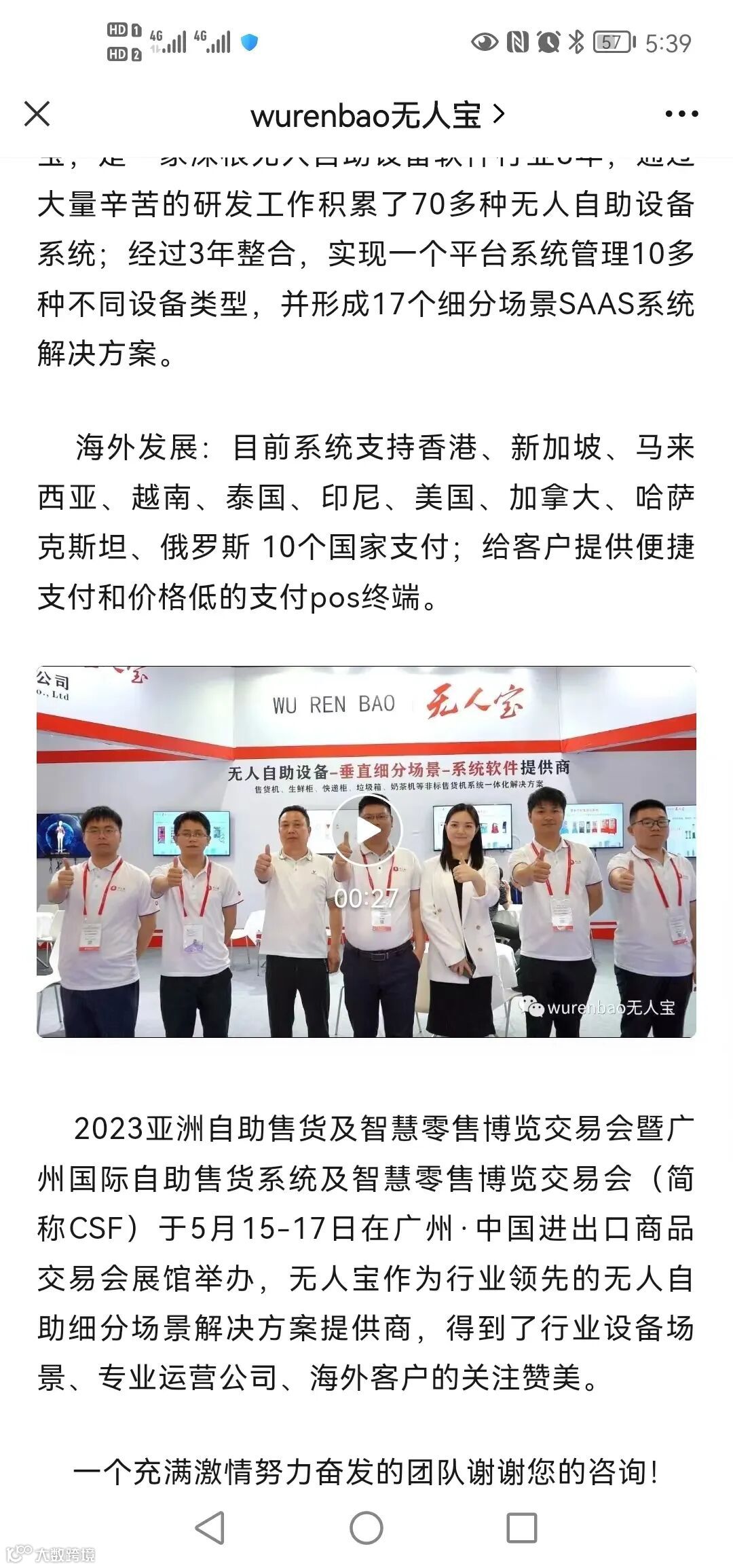 2023亚洲自助售货及智慧零售博览交易会于2023年5月15-17日,在广州·中国进出口商品交易会展馆圆满落幕,展品涵盖饮料零食品牌,自助售货机,自助娱乐设备,智慧零售,商业支付,商超设备,生鲜技术等,吸引380余家自助售货、智慧零售、零售空间、商业支付企业参展,超过6万人次国内外专业观众到场参观,其中来自国外的专业买家达到了800多人。