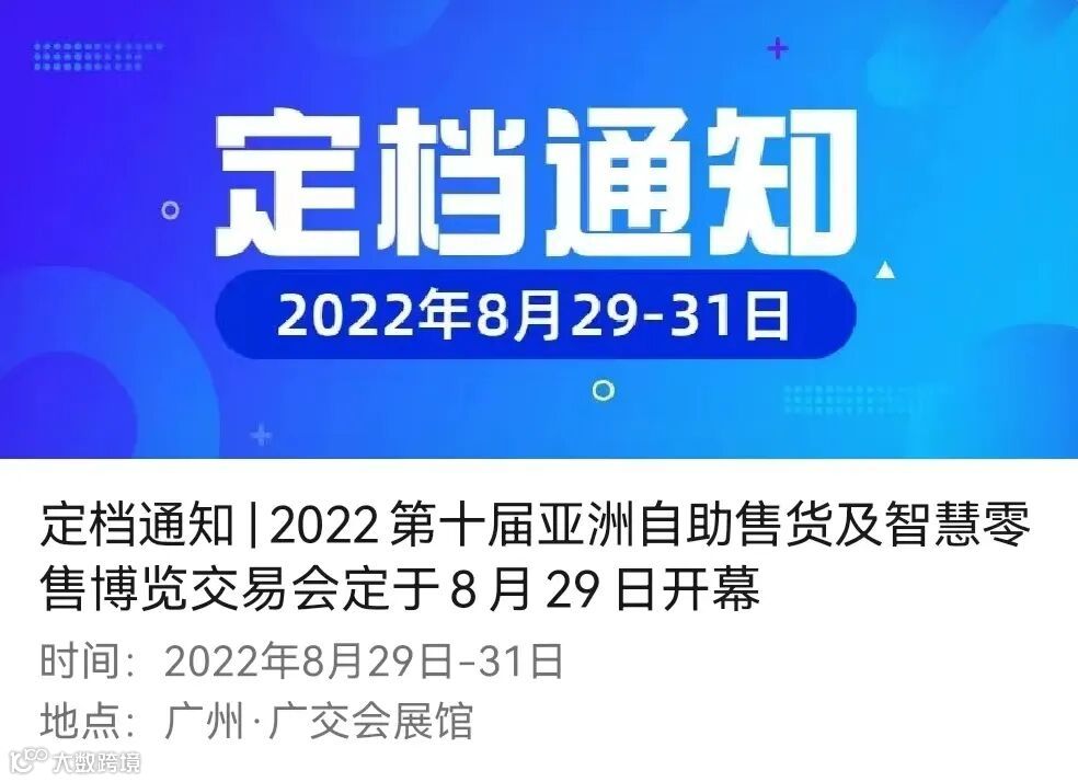 定档通知 | 2022第十届亚洲自助售货及智慧零售博览交易会定于8月29日开幕