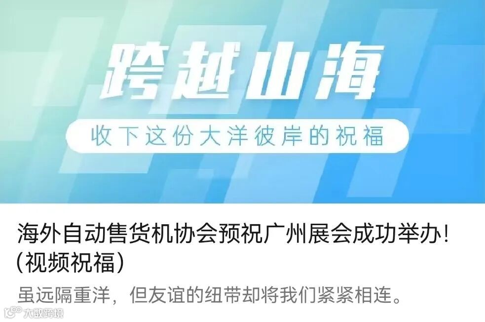 海外自动售货机协会预祝广州展会成功举办!(视频祝福)!