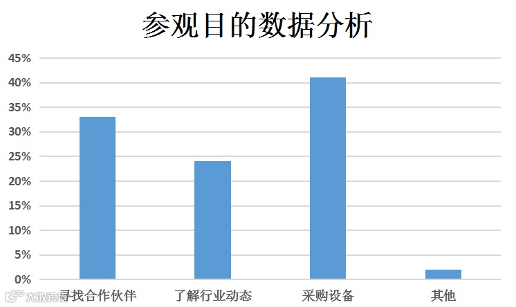 【图例说明】数据显示,本届展会观众主要的参观目的在于采购设备、寻找合作伙伴以及了解行业动态。