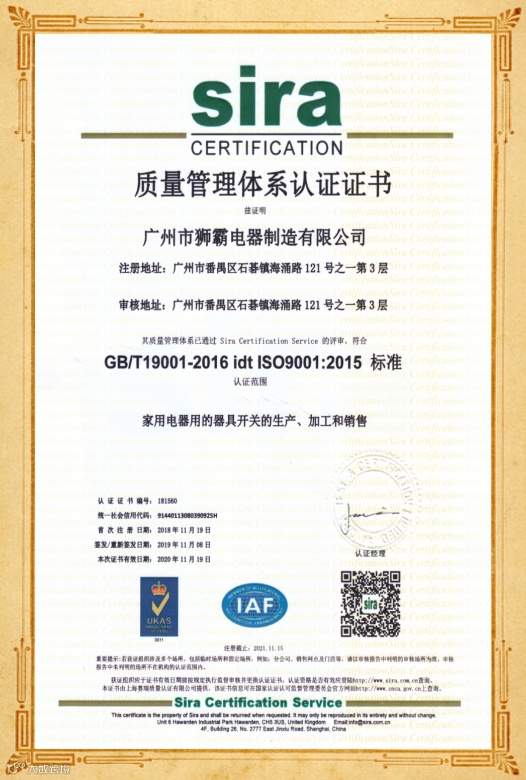 公司执行严格的质量控制流程,从新产品研发,到成品出厂和售后服务各个环节,已通过并获得ISO9001:2015质量体系认证。绝大部分产品取得通过了CE,CQC,CCC,TUV,CB,ETL,KET,CUL,PSE,ROHS等国内外权威安全认证。这些认证不仅反映了我们产品的质量,而且帮助我们客户取得相关认证轻松进入相应的市场。