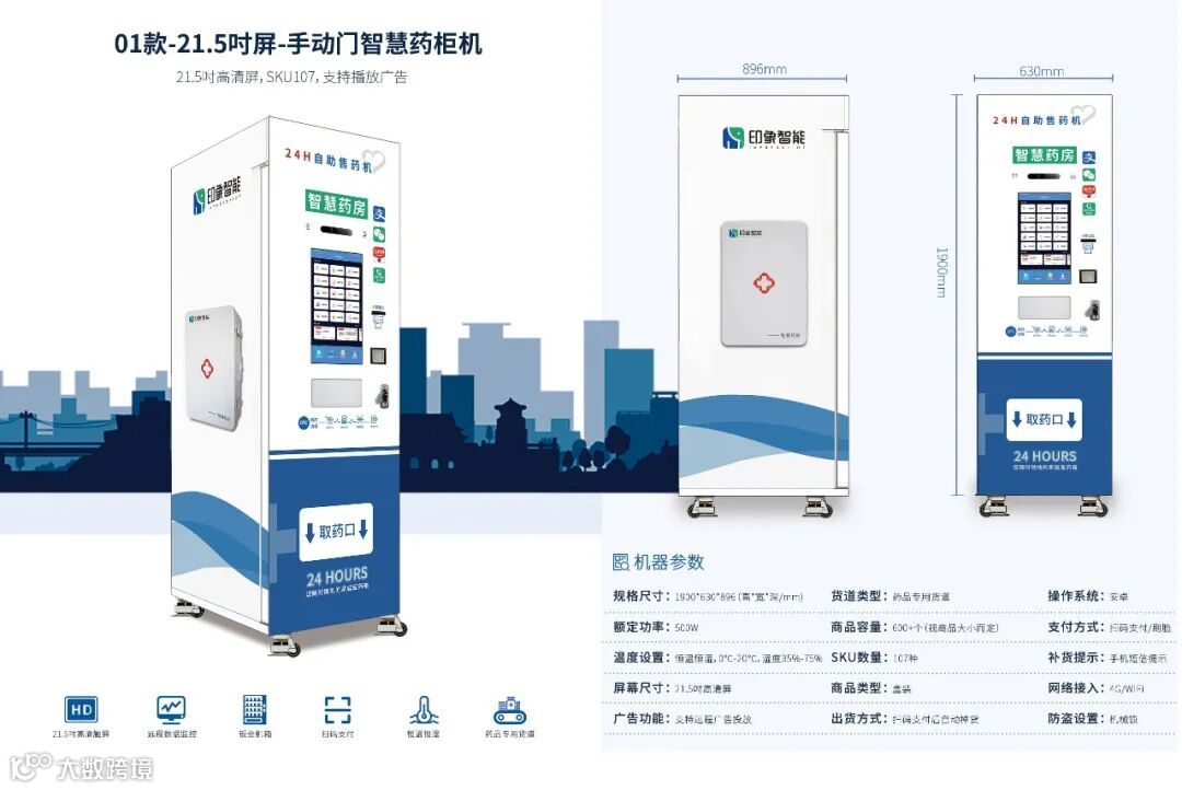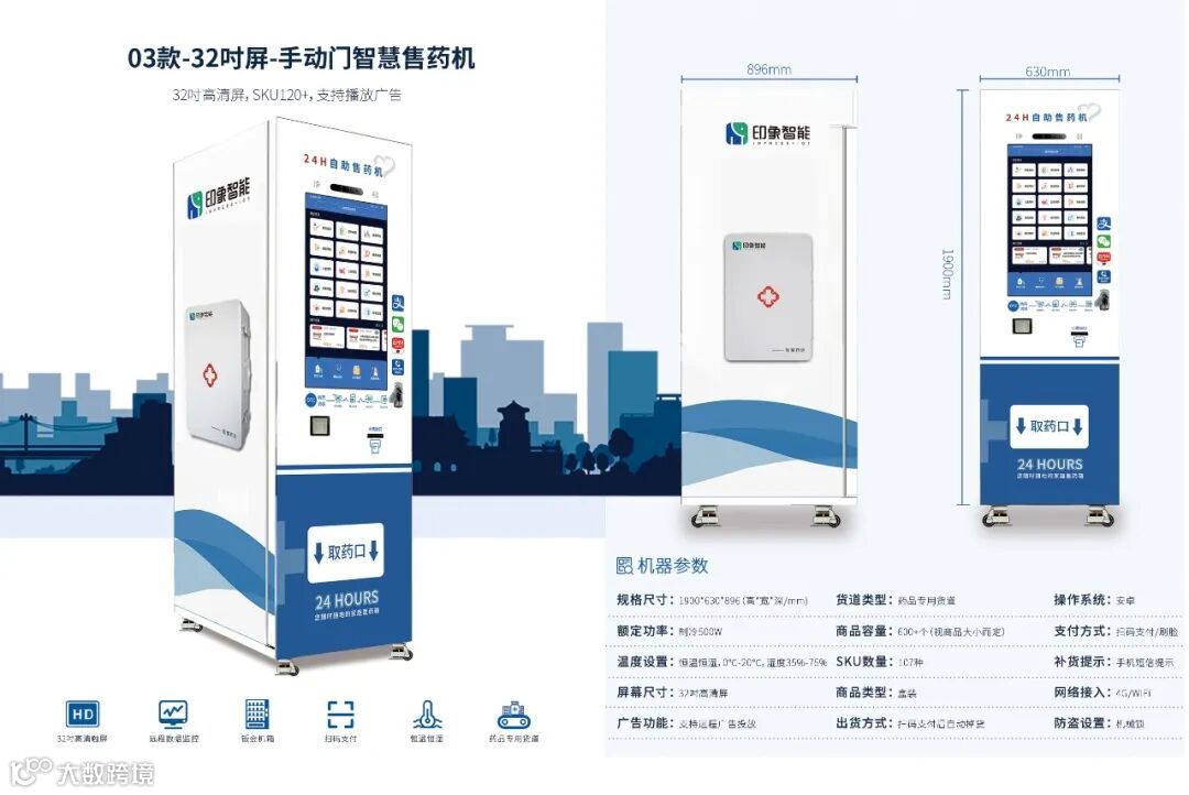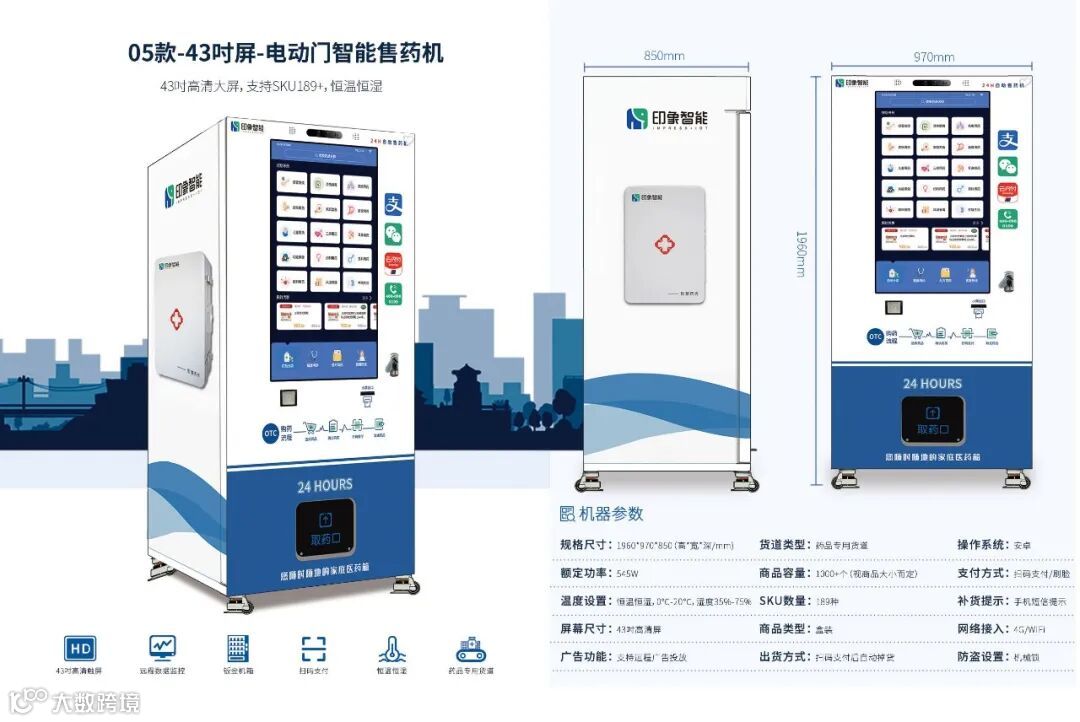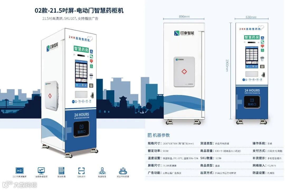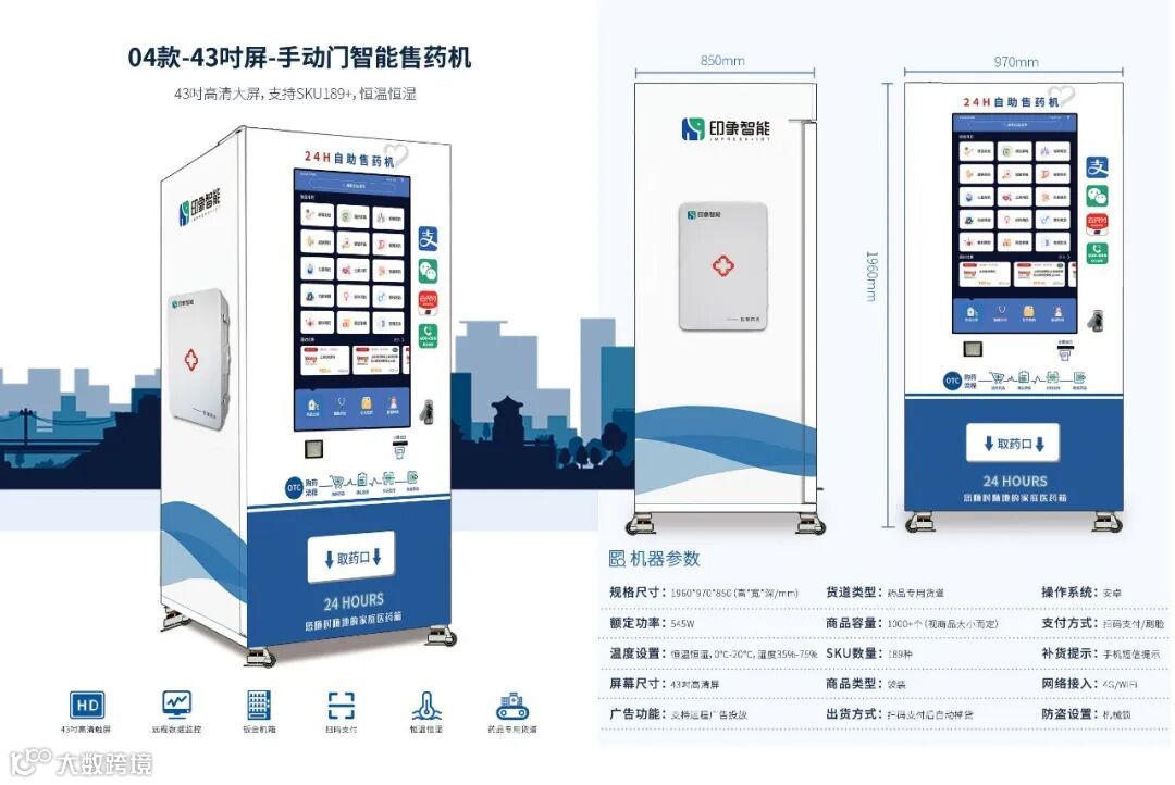 广州印象智能科技有限公司成立于2013年,坐落于羊城广州,拥有230000方厂房,年产达到6万台,致力于智能新零售行业垂直终端解决方案!将智能新零售应用在自动售药机上,研发全球更先进的智能售药机、数字医疗、智慧药房、互联网问诊,通过运用智能系统和云技术,开启产业变革,成为中国创新医疗药品机品牌。