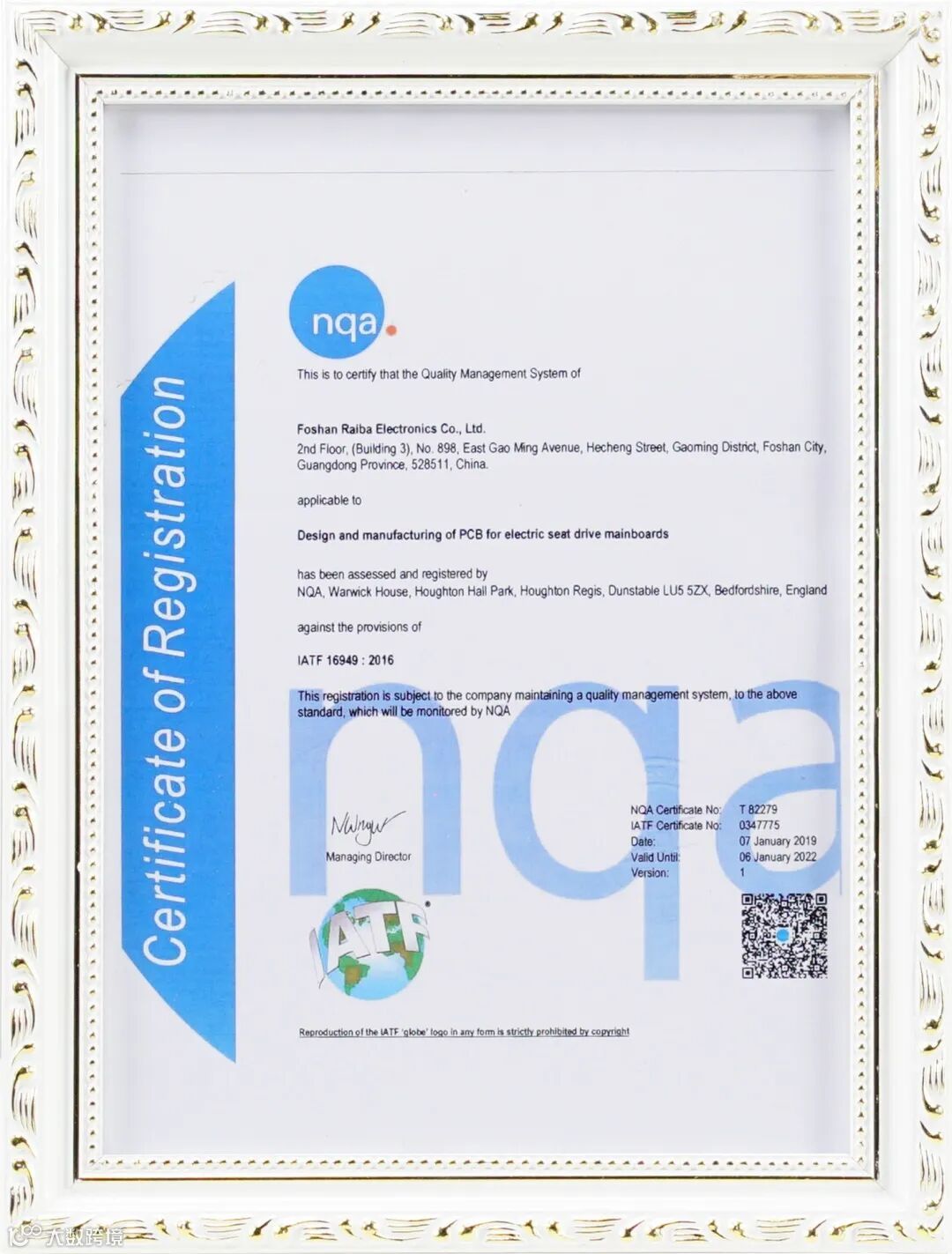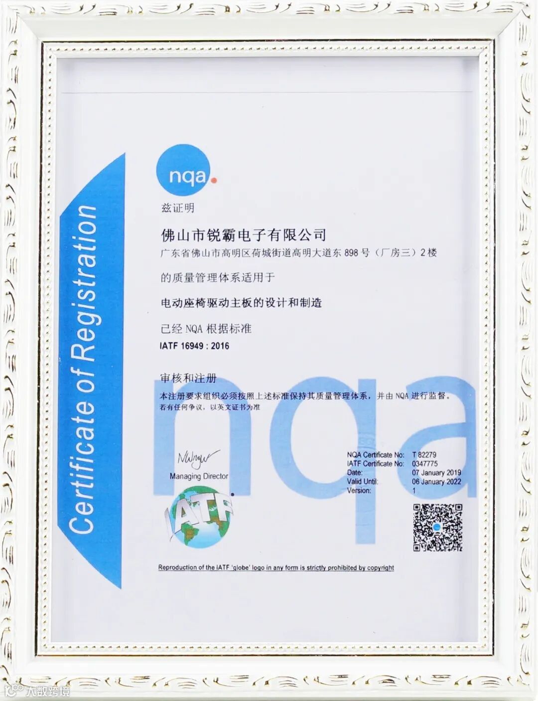 通过IATF16949:2016认证,并取得证书;