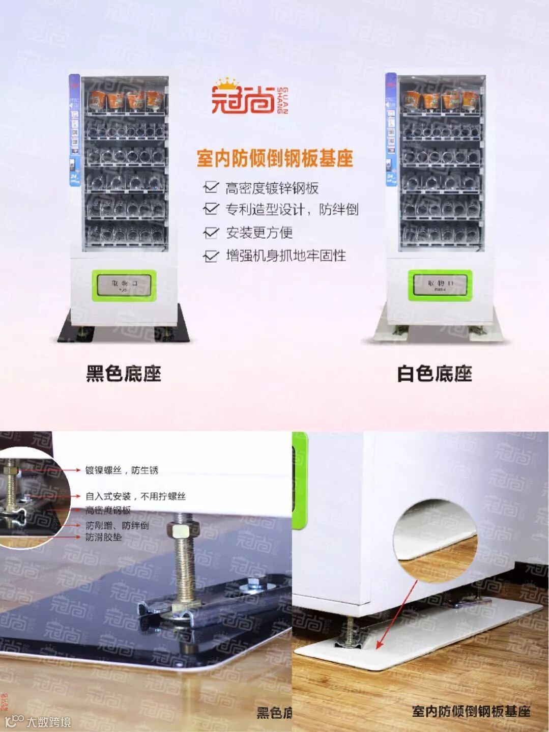 河南冠尚电子科技有限公司,专注售货机周边产品的研发销售及售后服务十余年。本公司主营各种自动售货机相关产品,自动售货机遮阳棚防雨篷、贩卖机专用防盗锁及防盗锁盒锁罩、售货机防盗用品、自动售货机运营中用到的静音手推车,及各种自动售货机配件等等适合各种机型。本公司一切产品适用于澳柯玛自动售货机、富士冰山自动售货机、兴元自动售货机、金码自动售货机、中吉自动售货机、农夫山泉贩卖机、哇哈哈宗盛商业,友宝自动售货机,盛马自动售货机等各个厂家的自动售货机。可以根据客户要求提供不同的服务,为自动售货机客户提供各种解决方案。本公司以专业、专注解决自动售货机配套产品为宗旨的理念在售后服务上做到满足客户的一切所需。我们立志于为广大运营商提供最优质的产品及服务。