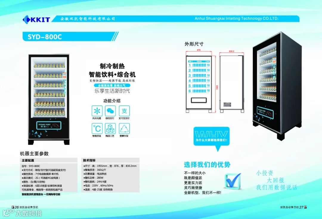 2015年,成立安徽双凯智能科技有限公司。同年,一代饮料机、自助洗车机、自助售药机,成人用品自动售卖机等多种机型陆续占领市场。