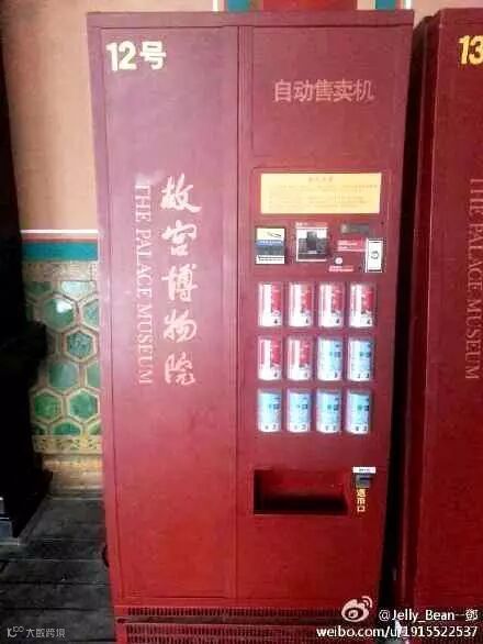 在这种被大家吐槽到上了热搜的海报中,眼尖心细的运营商们肯定也Get到了另外一个信号,在如今的故宫中自助售货机已经在在默默的有了自己的不少的位置啦!也有不少的小伙伴已经在微博发现这样故宫文创自助售货机,具有现代技术的机器被宫墙色的外表装饰,颇具古风,放在故宫中丝毫没有违和感!既不破坏整个风貌,又能方便顾客购买,深得参观者的欢心。