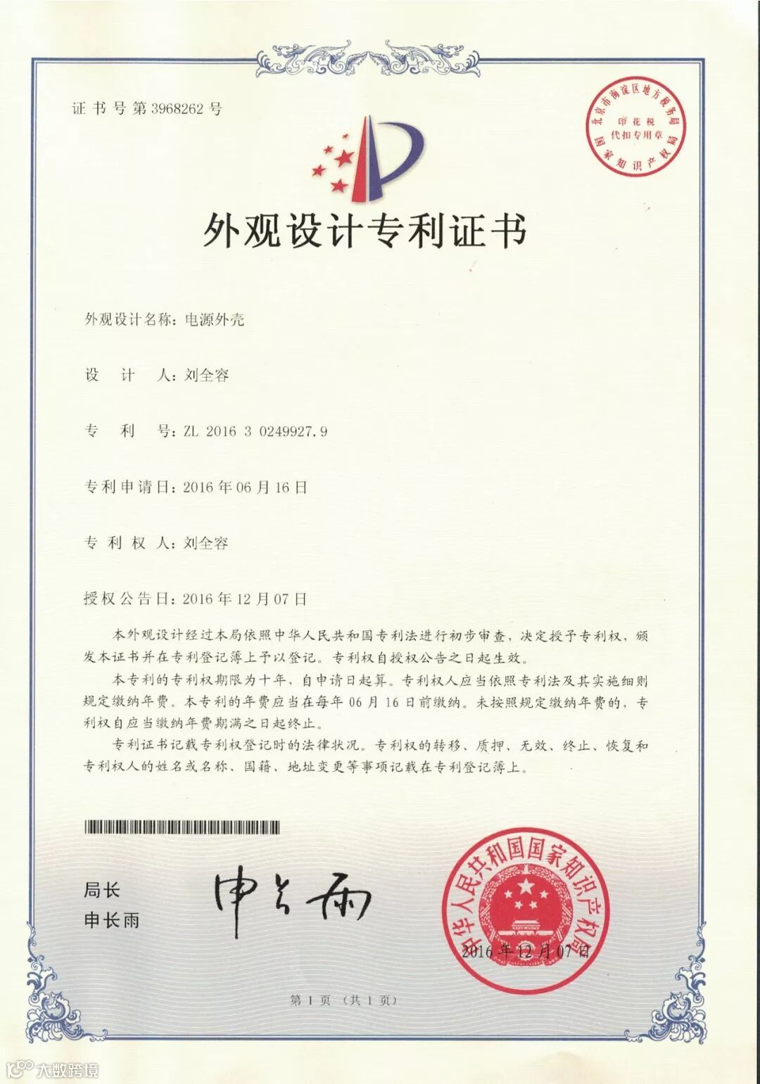专利荣誉