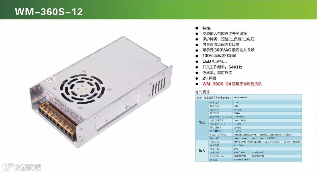 产品覆盖自动售货机、口红机、福袋机、游艺动漫设备、医疗设备、电解水机设备、工控设备、LED广告屏、喷绘打印设备、美容设备等领域,研发并量产出稳定可靠、性价比高的开关电源产品。