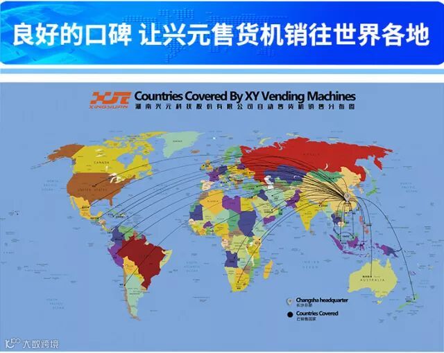湖南兴元科技股份有限公司的营销及服务网络覆盖全球,兴元全系列自动售货机产品已成功走向了全球40个国家和国内20余个省市,其创新性设计、精良的品质和优越的性能,赢得广大客户的信任与尊重。