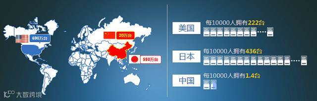 中国自动售货行业增长不可忽视,饱和容量要达到2000万台,为现存量基础上翻100倍,产出经济效益超过数十万亿元。