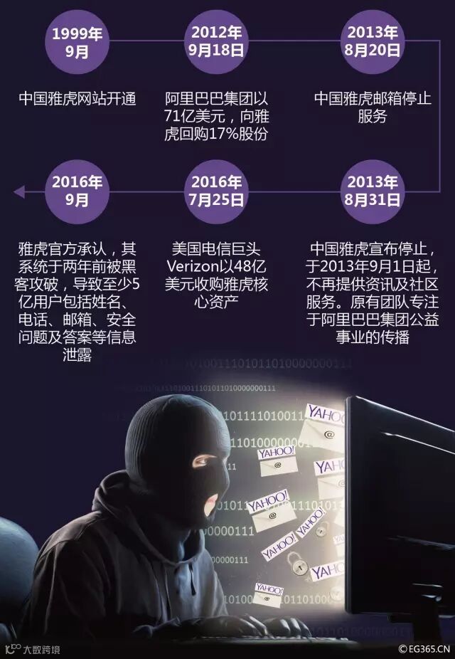 去年9月,雅虎公司宣布,黑客2013年8月盗走其至少5亿用户的账户信息。当年12月,雅虎又表示,被盗账户数量约10亿个。