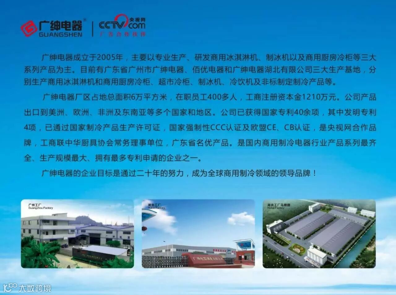 广绅电器成立于2004年,主要以专业生产、研发商用冰淇淋机、制冰机以及商用厨房冷柜等三大系列产品为主。目前有广东省广州工厂和湖北省咸宁工厂二大生产基地,分别生产商用冰淇淋机和商用厨房冷柜、制冰机。
