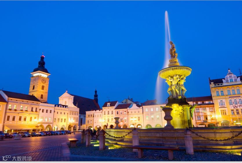 说是小镇,却拥有两个捷克全国之最:四边各长133米的正方形广场是捷克最大的广场;广场中央20多米高的塑像喷泉是捷克最高的喷泉。
