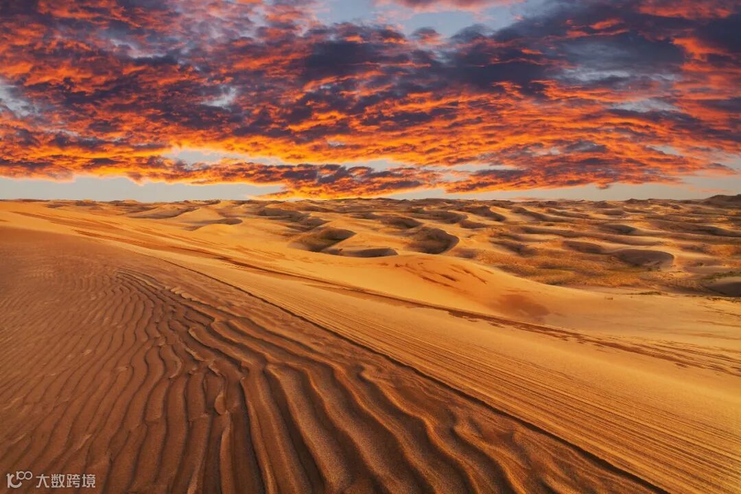 随着日出日落的到来,沙丘被晕染成了温柔的粉色和耀眼的金色,在辽阔的沙漠曲线中变得震撼无比,令人心醉!