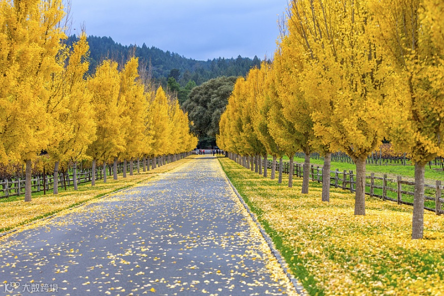 与古银杏不同,这里的银杏树树龄较短,并且不会长得很高,所以显得枝叶更加繁茂。放眼望去,一片连绵不断的金黄,美得没有尽头。