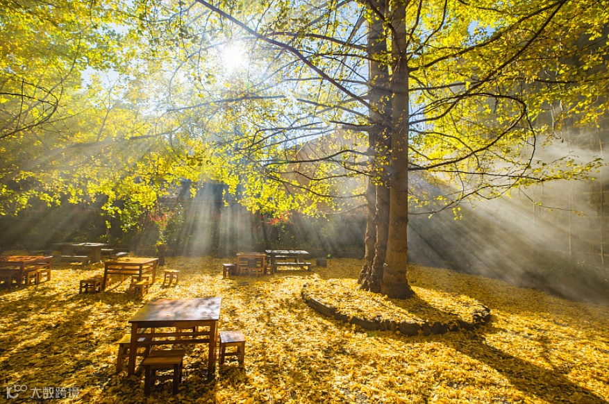 每逢秋季,古老的村子被笼罩在一片金黄中,村民们把银杏当做神树,更为这里添加了几分传统原始的气息。
