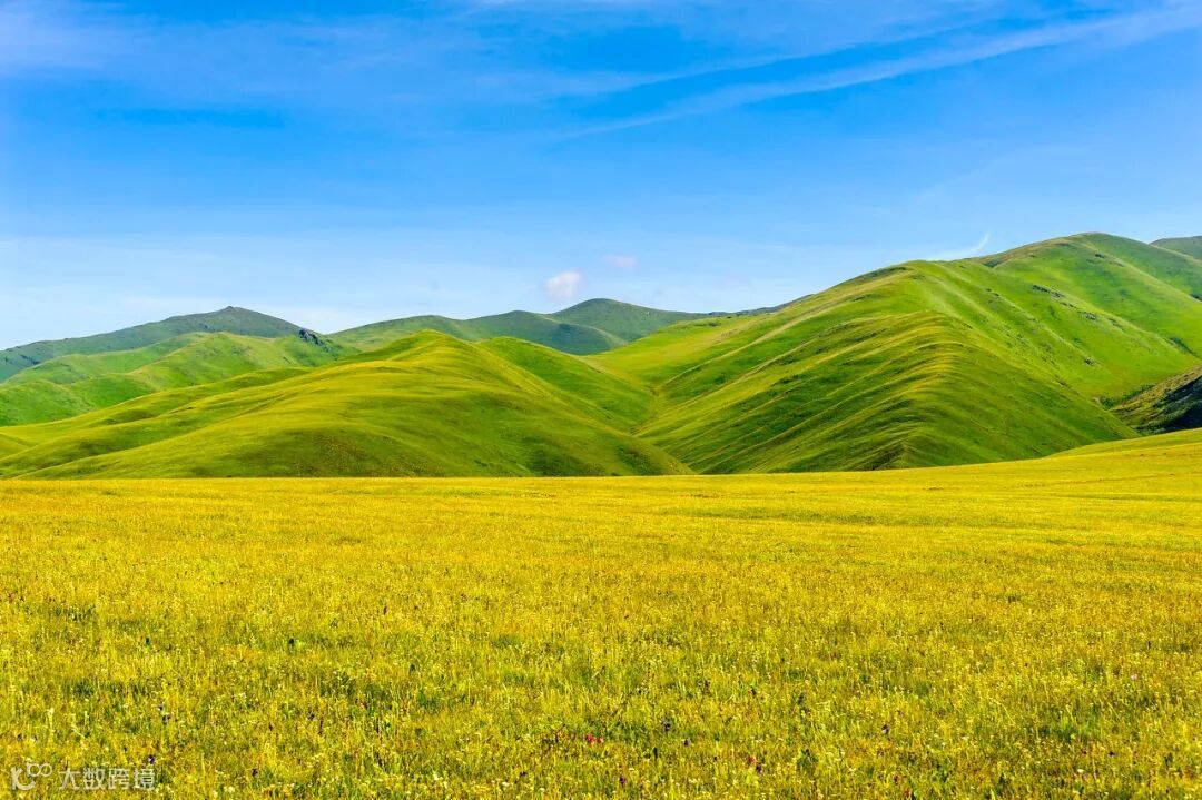 当汽车从山区一路驶向草原,世界越来越开阔,无垠的草地、烂漫的鲜花、成群的牛羊、湛蓝得没有一丝阴霾的天穹……