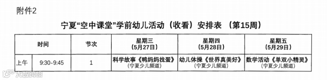宁夏“空中课堂”学前幼儿活动安排表(第15周)