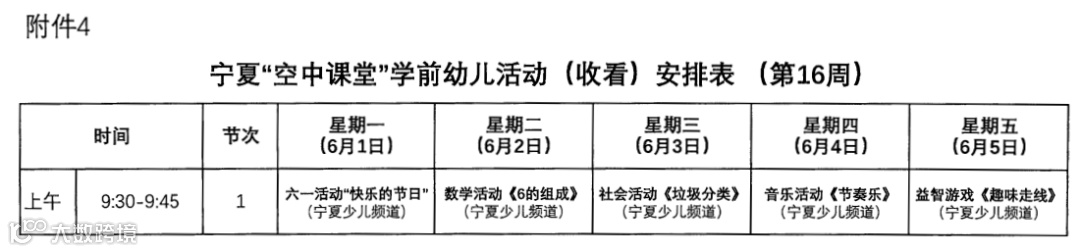 宁夏“空中课堂”学前幼儿活动安排表(第16周)