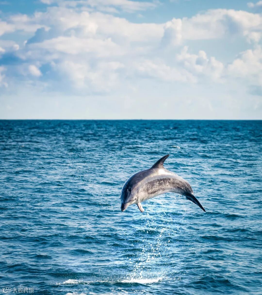 畅游于海湾区,时常有海豚跳出海面,穿梭在旁;