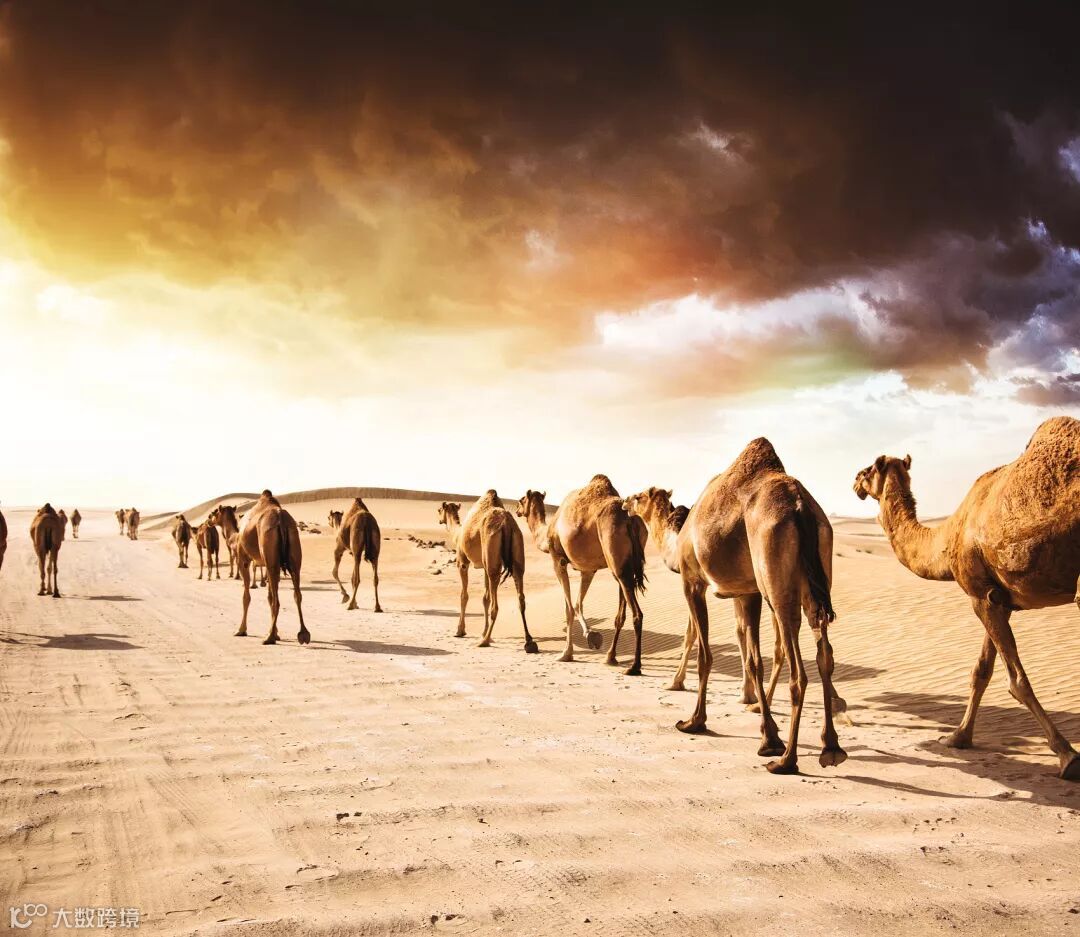 骑着骆驼,在沙漠中漫步