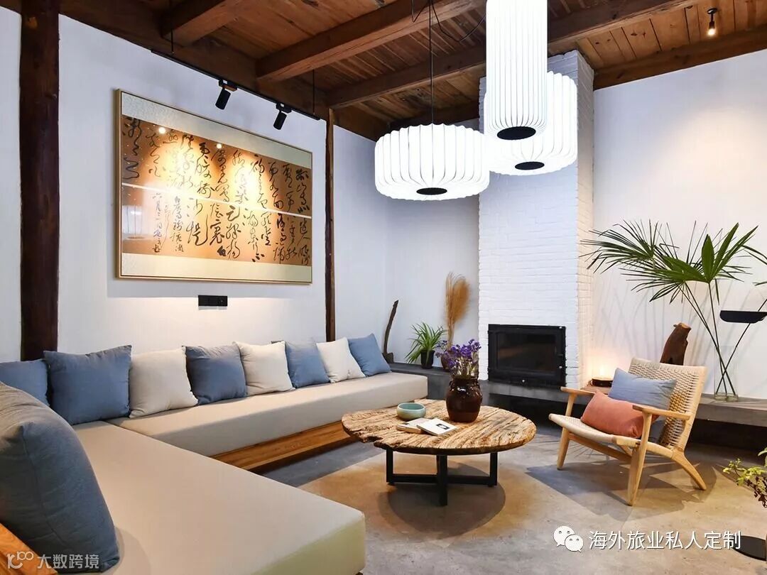 1、5间房+雅致庭院+沙发组合休闲区+壁炉( 100元/天) +书法扇体验书法( 30元/把) ;
