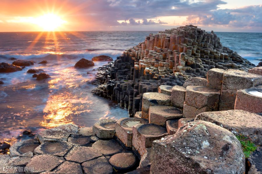 “巨人之路”位于北爱北部海岸的山脚下,它是由一条条顶部被整齐地切割掉的石柱组成的。石桂星六角形,坚固地深埋于海岸之上,紧密地挤在一起。