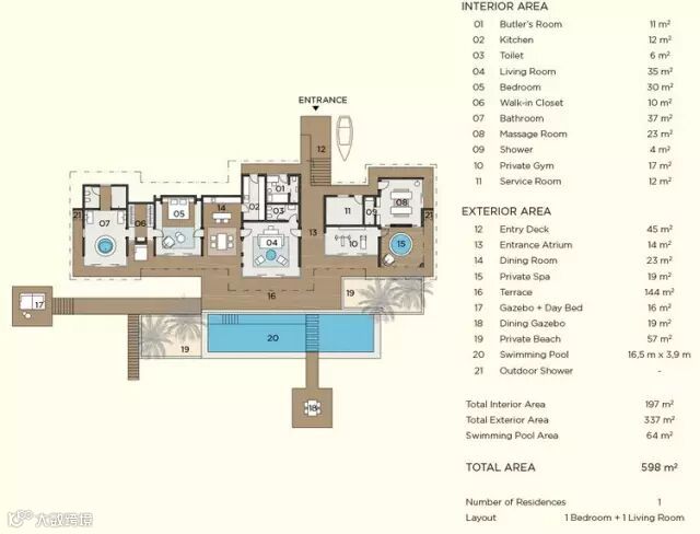浪漫泳池别墅 Romantic Pool Residence 1间 598㎡