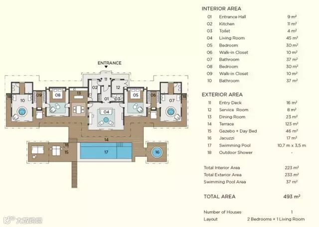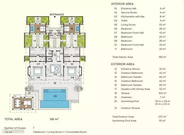 海滩泳池屋 Beach Pool House 7间 581㎡