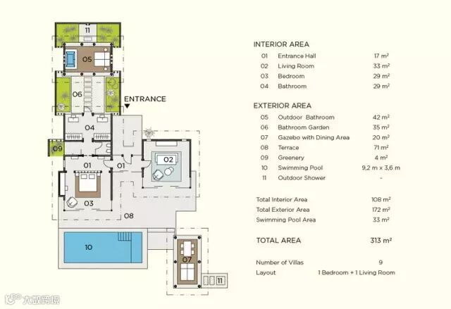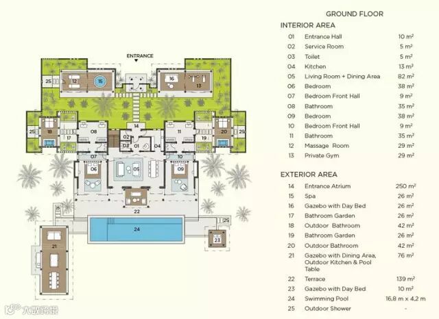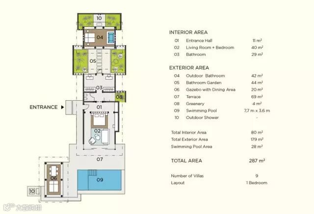 海滩泳池别墅 Beach Pool Villa 9间 287㎡