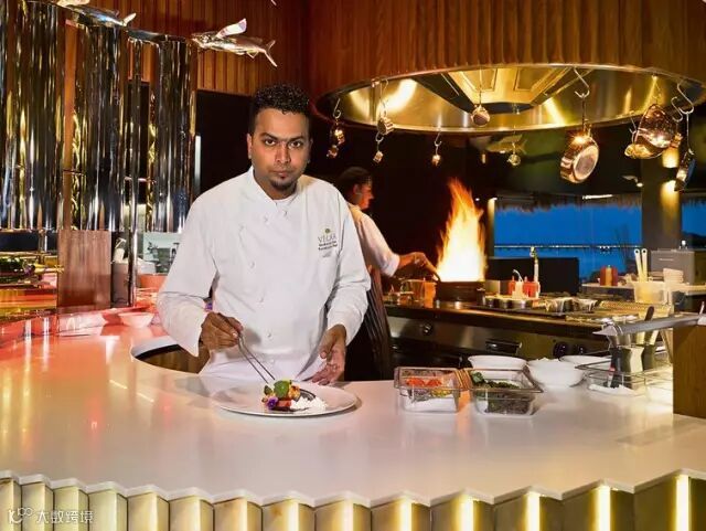 随着海浪温柔地拍打着海岸,维拉私人岛标志性的 Aragu 餐厅宛如漂浮在海水之上一般。这家餐厅可以为宾客奉上各色各样的饕餮美食。