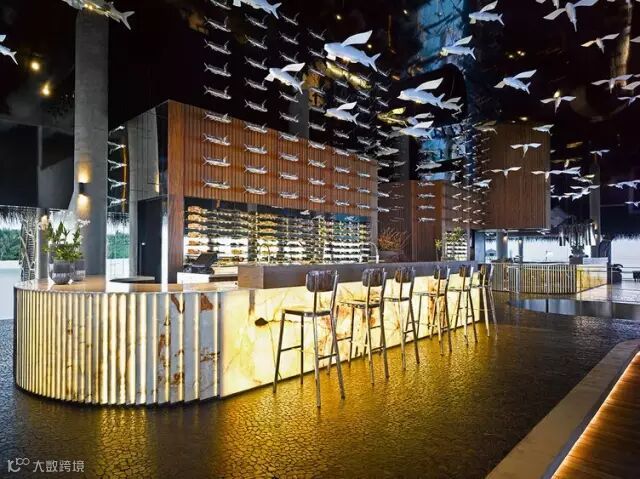 CRU 香槟酒廊散发着极致典雅的氛围,举目可眺望澄蓝明净的印度洋海域,客人可在此品尝世界顶级佳酿和珍品香槟,更有专业侍酒师提供贴心指导。