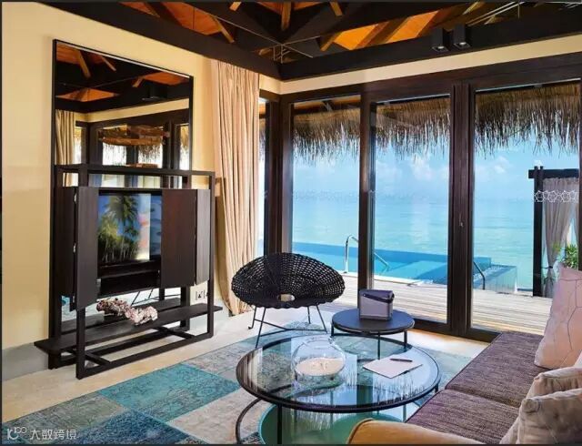 海洋泳池别墅位于岛屿的尖端,拥有得天独厚的私密性,双卧水上屋装饰着传统风格茅草,居住空间充满精心打造的典雅元素。微风透过百叶窗吹进屋内,超柔软的沙发上铺满舒适靠垫,安静地依偎在沙发上,阅读一本好书,别提有多惬意。