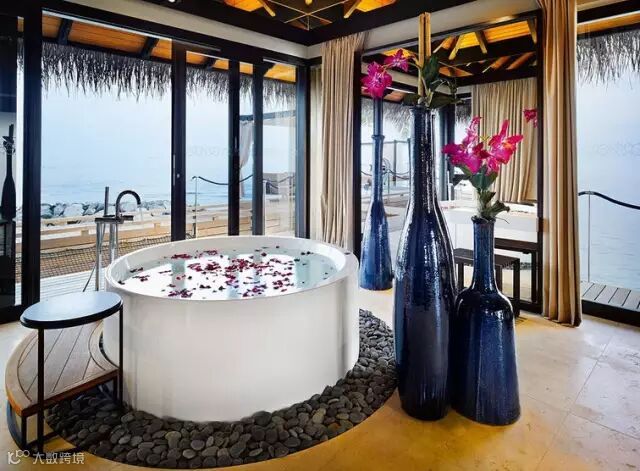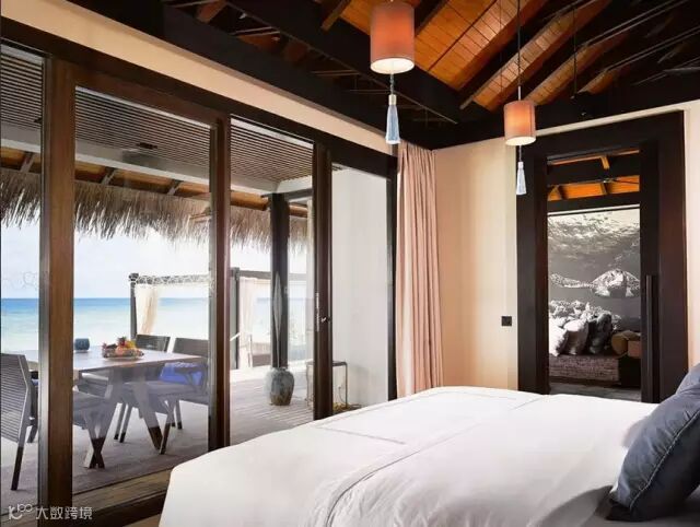 所有房间均可通往露台,按摩浴缸、泳池、阳光甲板和下沉式浴池一应俱全,从不同角度可观赏到变化多端的海平线风光。傍晚,来到水下用餐区或水上用餐凉亭中一边享用美食,一边观赏落日美景,或是舒适地躺在豪华躺椅上,漫不经心地啜一口饮料,都惬意非凡。室内采用天然材料和中性色调装饰,时而跳入眼帘的印度扎染布元素或动物印花都洋溢着趣味。别墅内配备私人健身房和水疗护理房,方便与舒适的私密享受让人不舍离开。