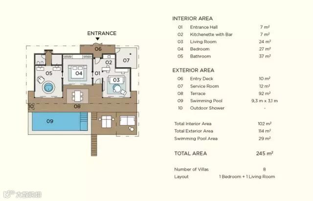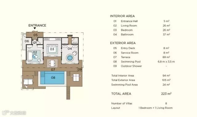 日出水上泳池别墅 Sunrise Water Pool Villa 8间 223㎡