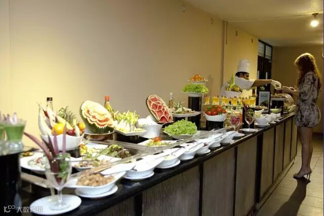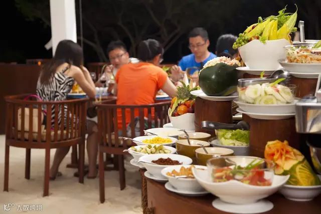 每个房间对应数字相同的餐桌,所以不用担心去餐厅找不到位子的尴尬处境。餐厅环境优美,干净、整洁而且环保,因为是开放式,所以没有空调,但是装了吊扇,所以一点也不会觉得热。岛上的环保也体现在餐后,岛上是使用餐布,很少见到餐巾纸。